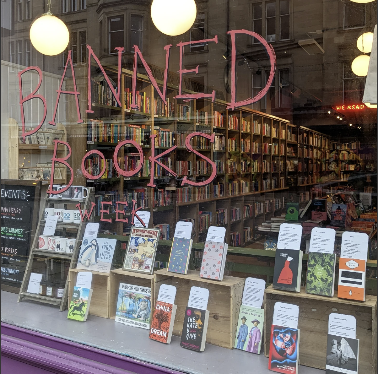 Bookshops and libraries including The Edinburgh Bookshop pictured above created banned book displays throughout the week.
