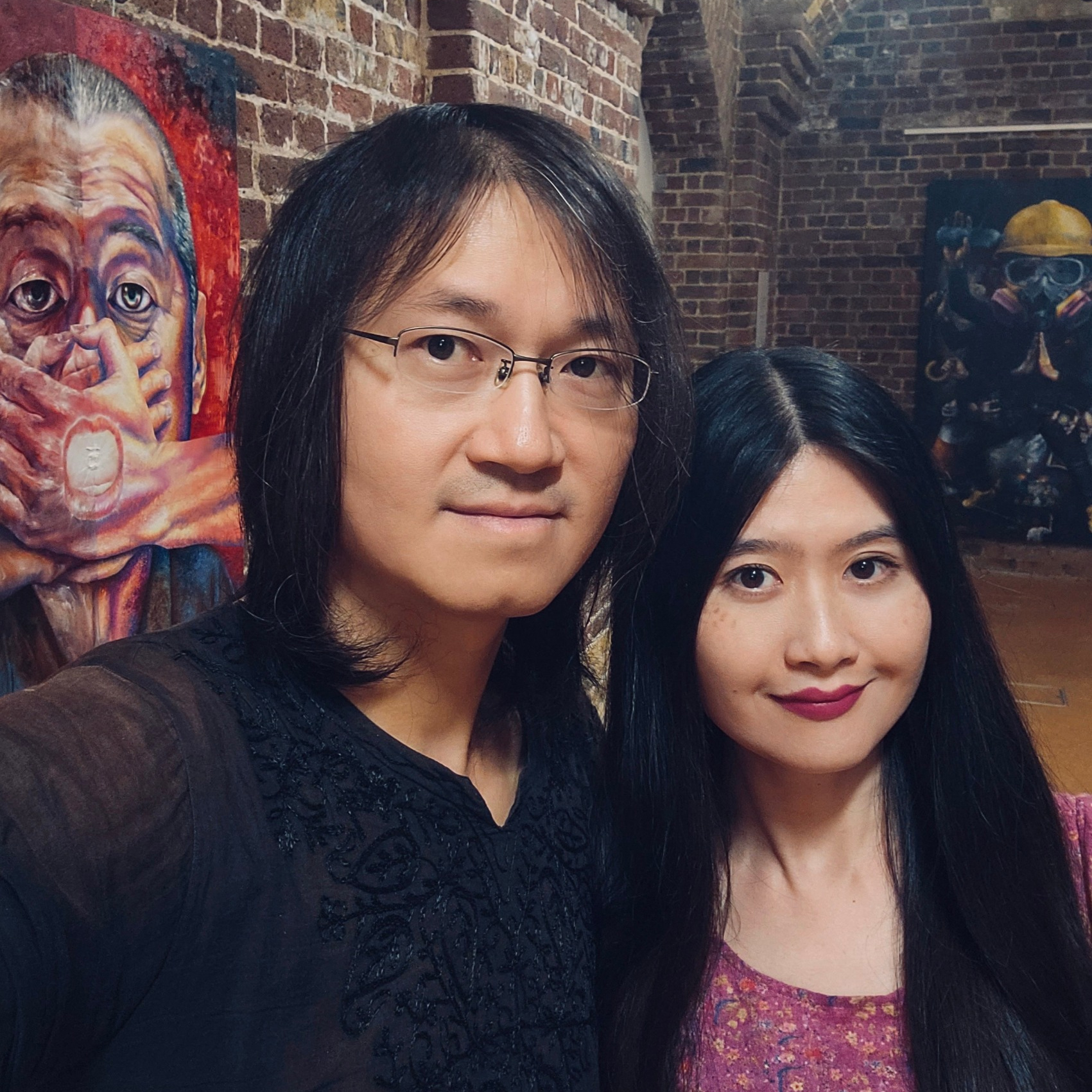 A London-based Hong Kong artist couple in exile, Lumli Lumlong (www.lumlilumlong.com), both were born into working-class families and studied fine art in France. They create grotesque-style oil paintings reflecting social realities. The left side of all their artworks are painted by husband, Lumlong, and the right by wife, Lumli.